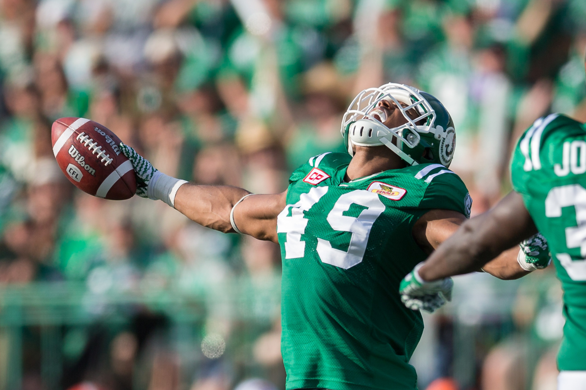 A: “It’s tough to single out guys, because each one of them has worked so hard in their careers. One would have to be Stanley Bryant, he was a tough offensive lineman to go up against.Michael Ola, who I played with before is a great offensive lineman, who is now in the NFL. Tyler Holmes, who I played with at Tulsa, and got to play against in the CFL. All the guys on the Edmonton, and Toronto lines are all guys that I can remember being tough to go against. I can see them lined up in front of me, but cant figure the names out. Every single offensive lineman that I’ve gone up against has my respect. They’ve never gotten enough credit for what they’ve done for their offensive players behind them, and it’s real hard to single them out individually. The guys on the line challenge me and the rest of the defense every week and made us all better athletes!”